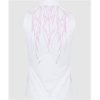 Introducing a revolutionary womens golf polo with an athletic fit and a sophisticated engineered butterfly print. The Eilish Jersey Performance Sleeveless Polo defies convention, blending super luxury with cutting-edge performance technology: moisture-wicking, four-way stretch, and UPF 50+ sun protection.