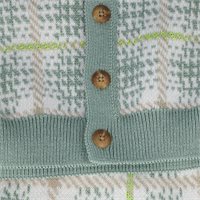 Stay warm and fashionable in this cardigan sweater. Features Nikes Tartan print for a one of a kind look. Finished with full button closure, a fitted bottom hem and fitted sleeve ends.