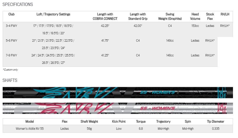 The chart below show the stock options for the Cobra KING F8 fairway wood.